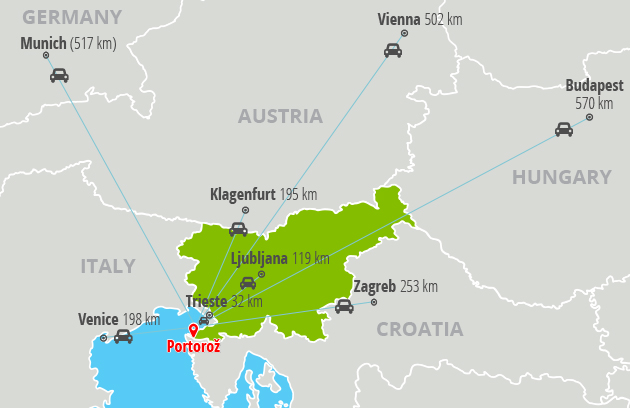 - Z avtom, po avtocestah iz smeri Trsta in Ljubljane